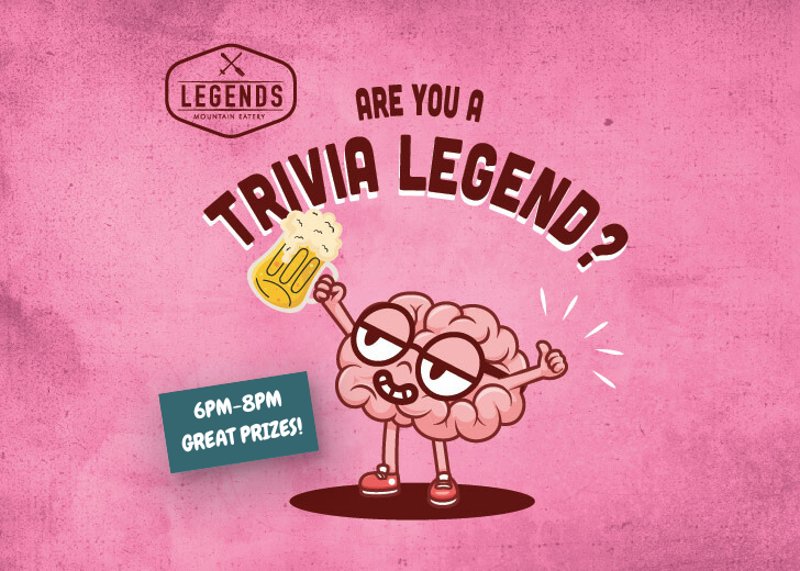 Hey, Trivia Champs! Are you ready to unleash your brain power? Gear up for an epic evening of festive Trivia at Legend’s Restaurant! Our hosts are armed with questions on everything under the sun, and your table is in for the ultimate challenge. Plus, treat your taste buds to some of the legendary delights from our menu. Get in on the action, show off your brilliance, have some fun, and soak up the good times with food, drinks, and your favourite trivia-loving pals. Seating is first-come, first-served, so hustle in early to snag your spot. You won’t want to miss this legendary showdown! |
